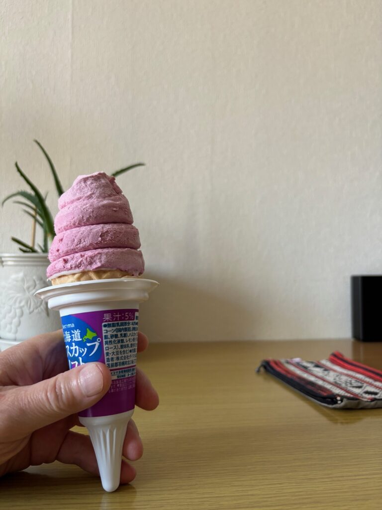 写真は、北海道中心に展開するコンビニ「セイコーマート」の「ハスカップソフトクリーム」(夏限定)